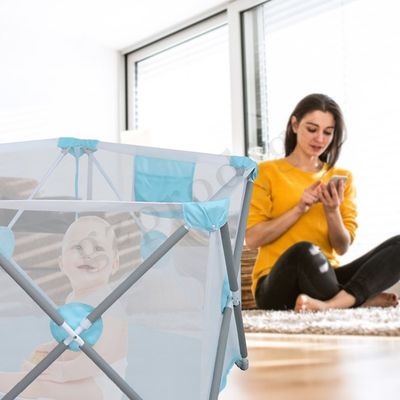 Multi-scene reis draagbare baby speeltuin met roestvrijstalen buis
